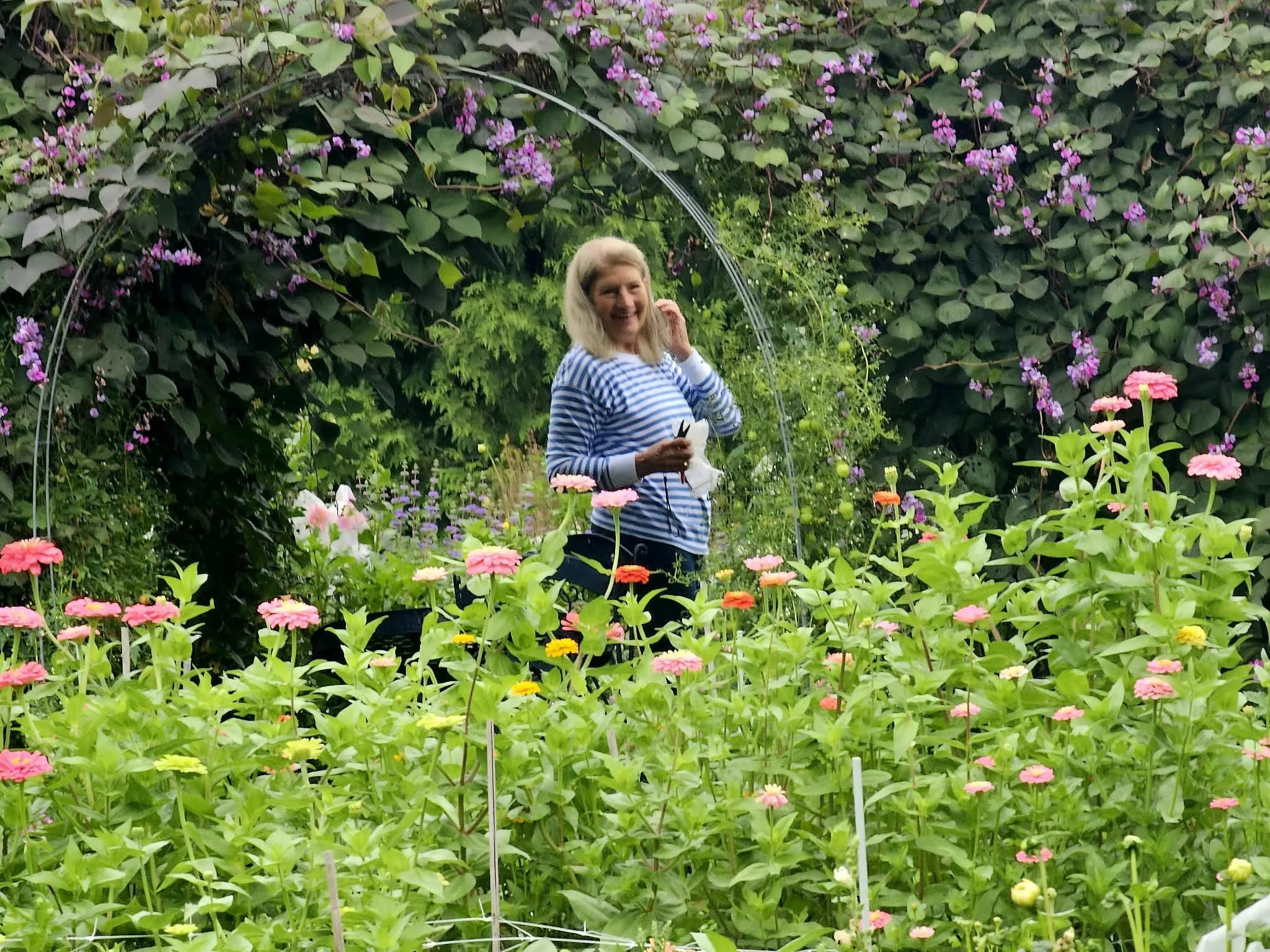 On these two acres, we raised our four children surrounded by soil, seasons, and stories. The garden holds decades of memories — from scraped knees and seasonal harvest to watching our oldest daughter say “I do” beneath the blooms. Our eldest built the garden shed that still stands today, our youngest constructed the hoop houses that help extend our growing season. Our second daughter, as well as our grandchildren carry a deep love for all things gardening.